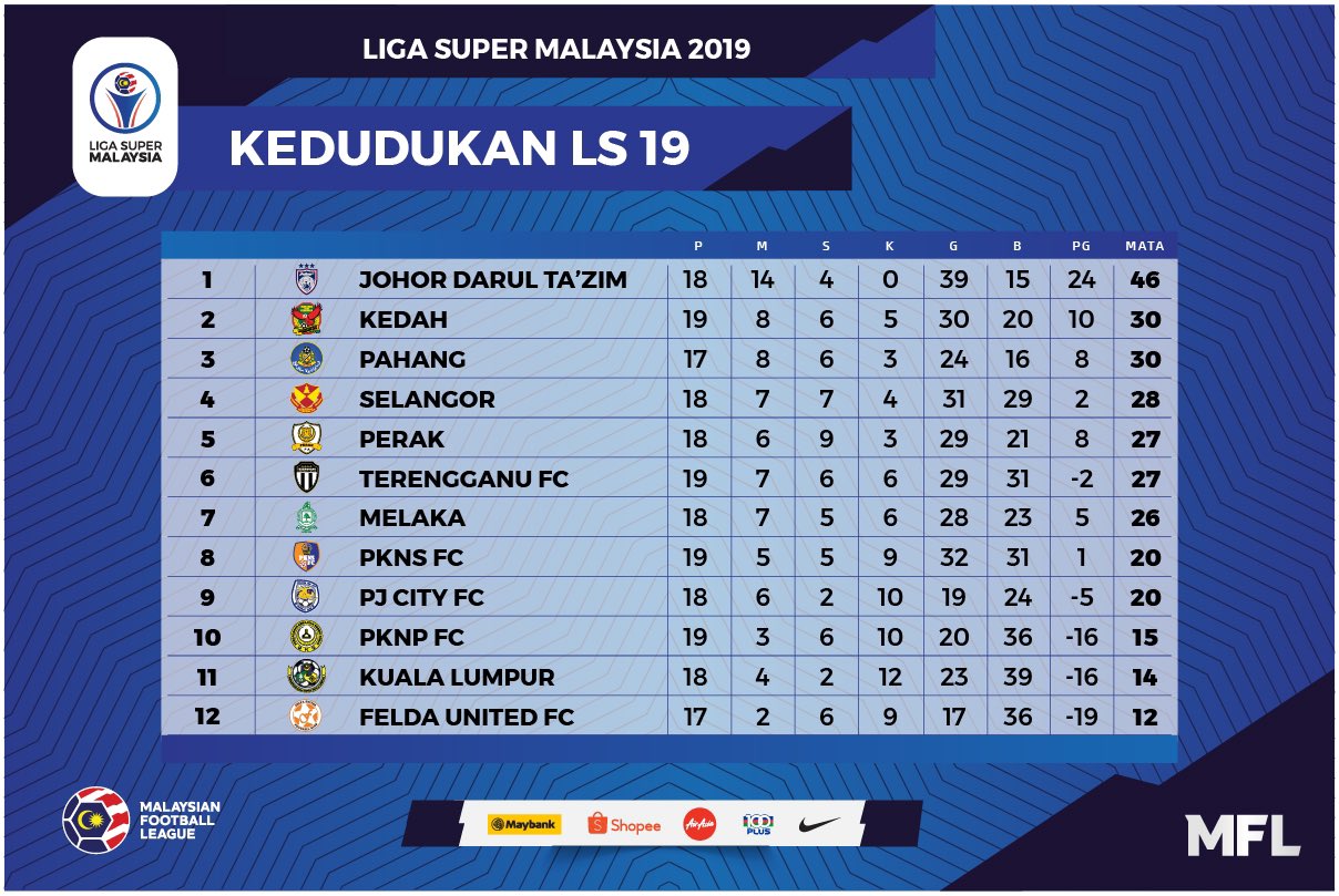 Twitter 上的 Ligamalaysia2022 Kedudukan Terkini Pusingan Ls19 Liga Super 2019 Ligasuper2019 Https T Co Vppvkrz3st Twitter